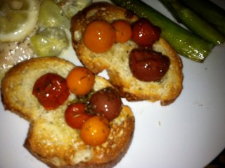 This was a great appetizer! I don’t normally like cherry tomatoes, but the combination of sweet and salty was definitely tasty.