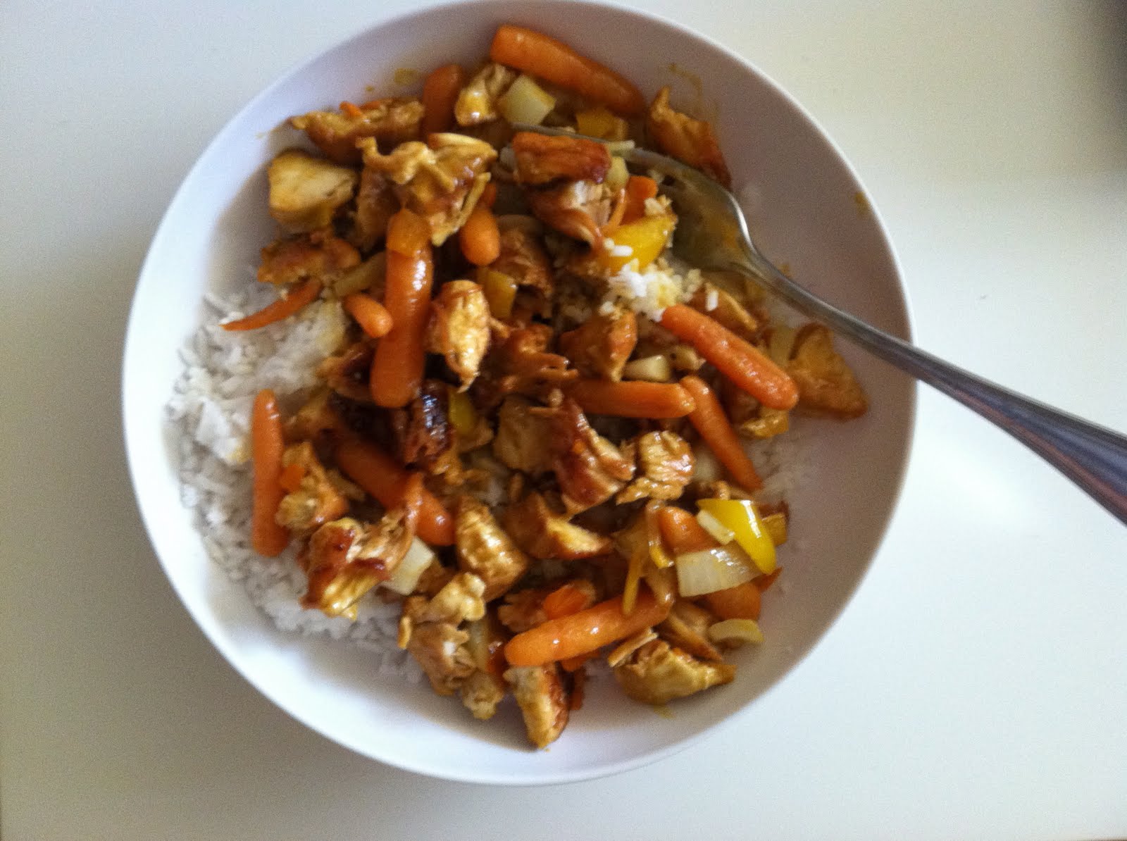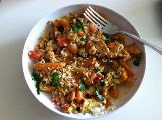I absolutely LOVE curry chicken so I’ve been wanting to learn how to make it. While I was at Trader Joes I saw “Thai Yellow Curry” sauce and had to get it. I know, I know…totally cheating, but I couldn’t help it. Once I use the whole bottle, I’ll learn to make the sauce too though. I got two meals out of this and it was really easy and delicious 🙂