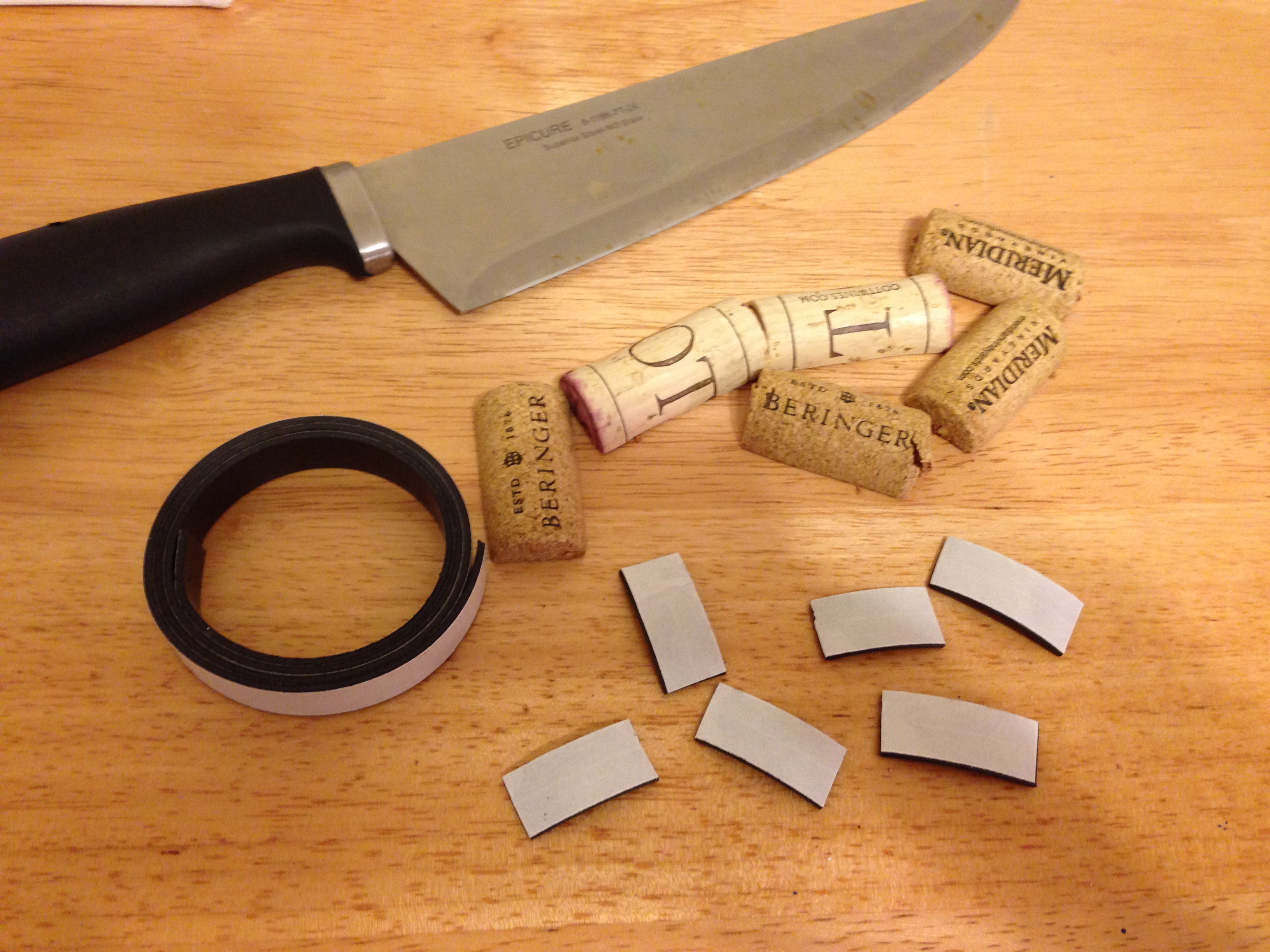 These magnets are very cute and super simple to make! All you need are a few wine corks and a magnetic strip. I would recommend looking for more heavy duty stick on magnets because these can’t hold anything too heavy but they work on photos and smaller items. Be careful cutting the corks–I used a knife but if you have something that would work better definitely use that!