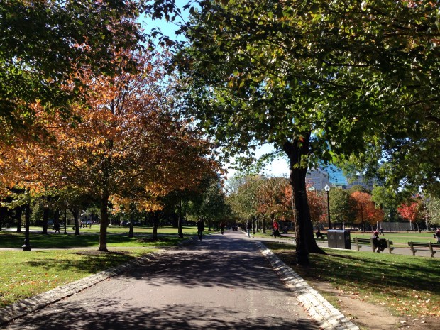 Although I’m not a huge fan of tours, the Freedom Trail was awesome since we could guide ourselves, which to us means lots of stops, historical facts from Matt, pictures, and most importantly, cruising at our own pace. First stop…Boston Common, as shown below.