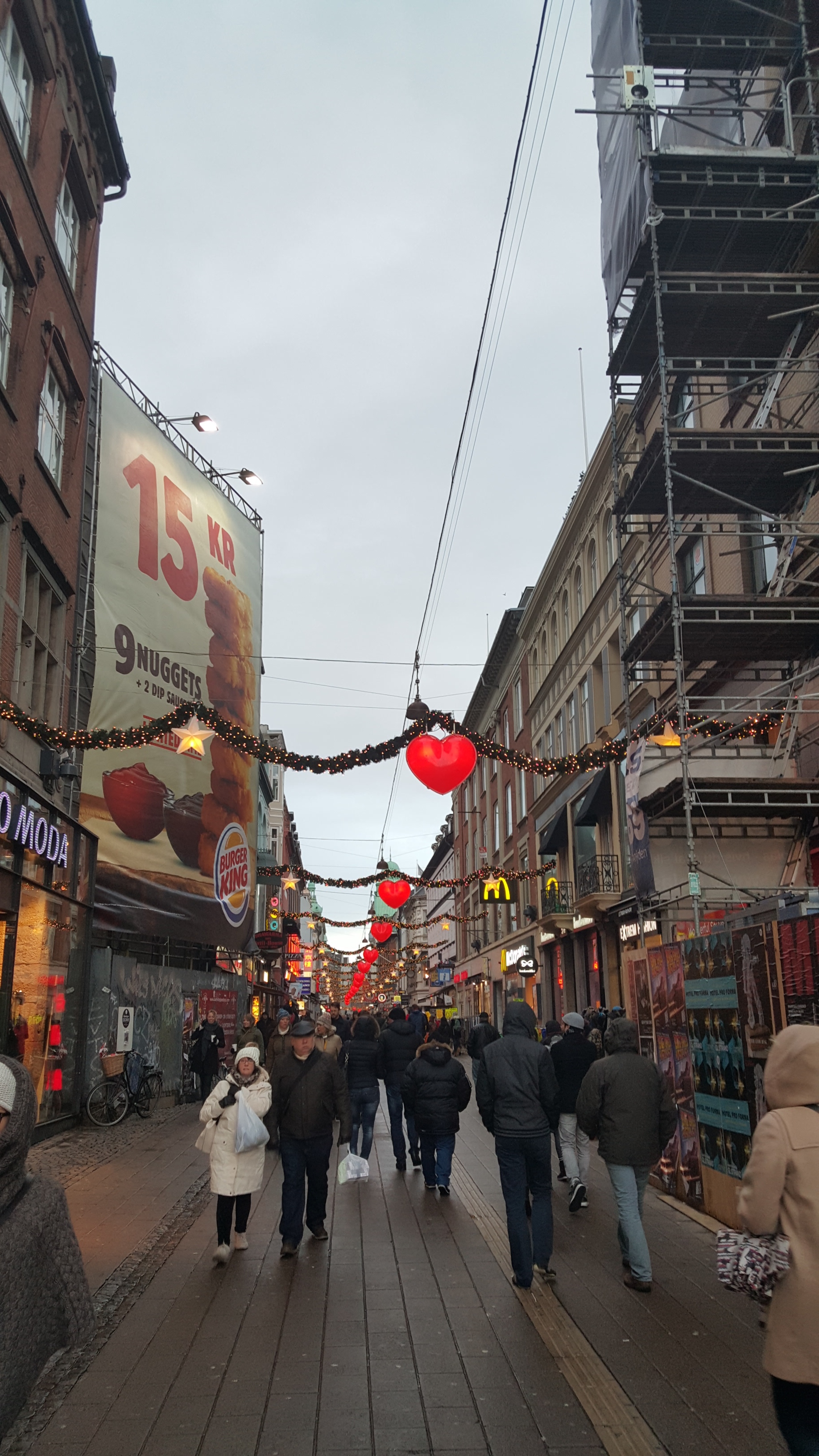 Strøget. This huge shopping street is touristy but it’s also the perfect place to get some Copenhagen souvenirs. Heading further west, we found the high end stores. Plus, the entire street was lit up with Christmas decor! Matt wasn’t the biggest fan because it was extremely crowded, he hates shopping, an as he said, it’s the “spitting image of Alvarado street in LA”.