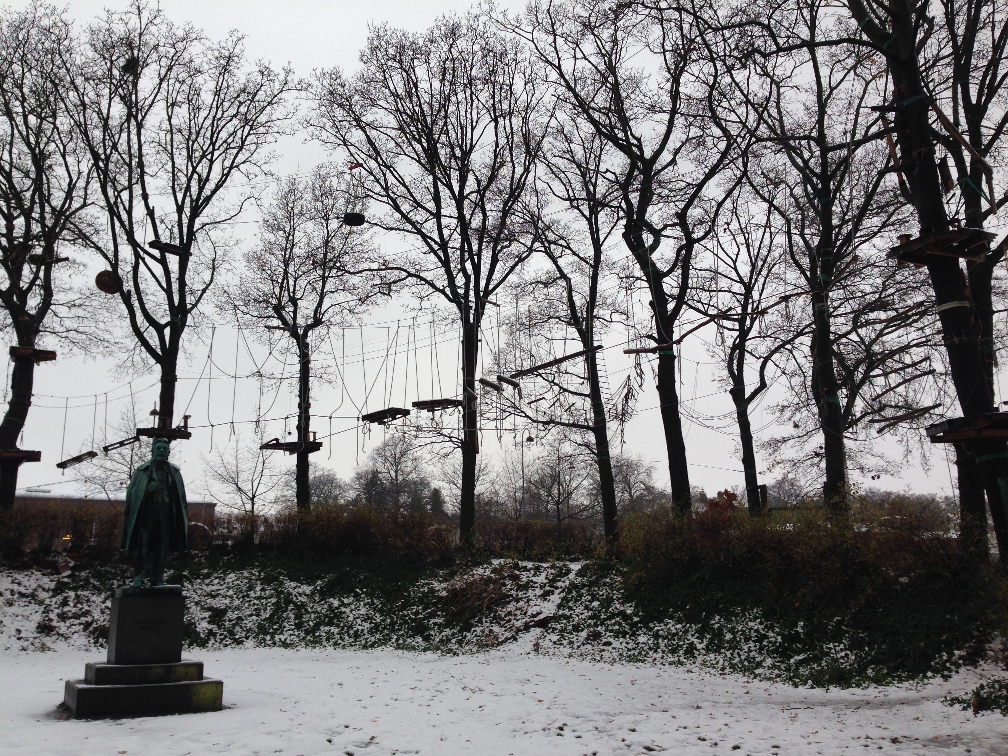 Carlsberg Brewery. It’s a bit of a hike from Vesterbro, so it may have been a better idea to take a cab, but it was definitely worth a trip. We got a flight of beer and had smørrebrøds for lunch while getting adjusted to being in a different country. Perhaps the most interesting part of this little journey was running into what I would guess is some sort of grown up playground. And a dangerous one at that.