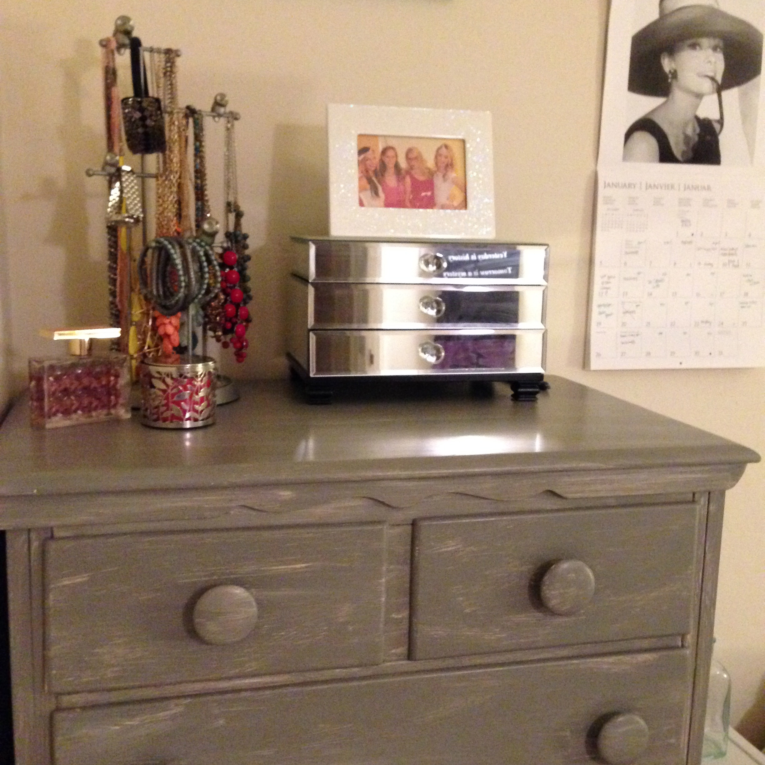 My grandma gave me this dresser when I moved into my first apartment in college. After two good years of use, I decided to update it when I moved to San Diego. I was really into the whole “shabby chic” thing at the time so my roommate and I wanted to try out the look and extend it throughout our apartment.