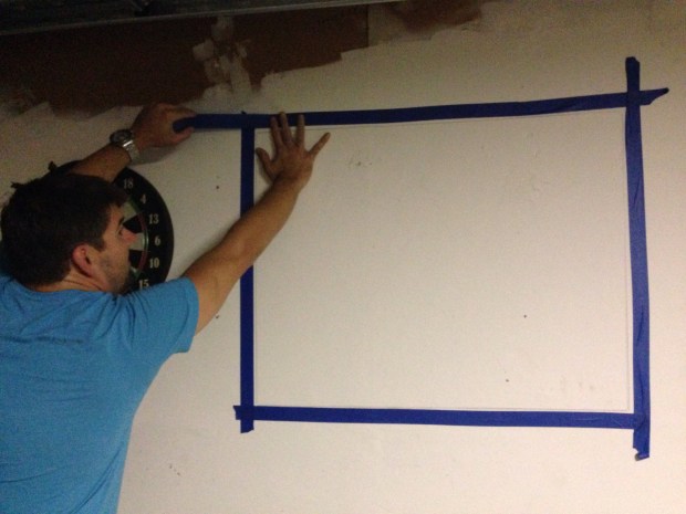 2. Create your chalkboard space. Hold the frame up to the wall and trace inside of it. Place masking tape just outside of the lines on all four sides.