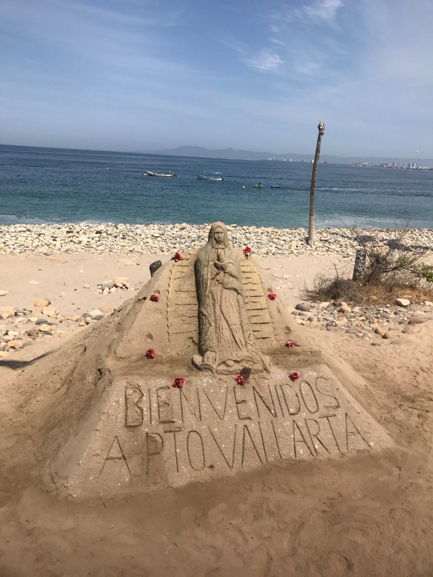 Explore Downtown Puerto Vallarta. Our favorite part of downtown was seeing the street actors who pretend to be part of the human sculptures along the main street next to the ocean. Sometimes they were hard to spot! There were also a ton of impressive sandcastles.