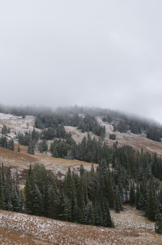 Roosevelt to Canyon. This drive was a trip! We went from a hot and sunny hike at Tower Falls to wind & snow at 10,000 ft near Mt. Washburn.