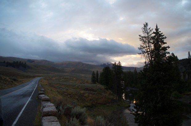 Sunrise over Lamar Valley. The amount of wildlife waking up and cruising around at that time was unlike anything. It was silent, pitch black and honestly a little scary driving over there from Roosevelt Lodge, especially since we woke up an extra hour early because the waitress thought the sun rose earlier than it did. Once we finally started to see a little bit of pale blue light rippling across the valley, we were amazed by the enormity and beauty. Not only that, but we heard and partially saw a bear just down by the river. By partially, I mean it was still dark so we saw a big hunched over animal that were assumed was a bison until we heard the sound it made.