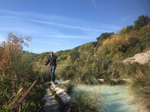 Bagno de Vignini. Okay, this was so cool. Bagno de Vignini is one of the many Tuscan hot springs and happened to be located on our way to Montalicino. Matt was very skeptical about the coolness of said hot spring, but I was determined to find it. It didn’t help that Google Maps had us take a very sketchy back road to get there (second dirt road after you turn off the main highway) and we weren’t sure if our tiny smart car would make it back up the way we came. Turns out there’s a paid parking lot above, where you can overlook the hot spring, but we thought it was pretty awesome to be able to cruise around below, even though portions of the walkway were flooded.
