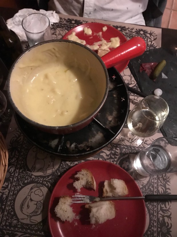 - Les 3 Sifletts in Vivey. Our super friendly Thun bartender recommended this place for trying the quintessential gruyere fondue. Our Swiss table neighbor, who also happened to be the most interesting man in the world, recommended that we have it with white wine and order the meat platter for dipping. Obviously, we obliged. The waitress was shocked we we ordered a small fondue to share, but when we finished it clean, she said she’d rarely seen fondue newbies finish the bowl. Still confused by these reactions.
