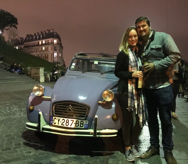 - 2 CV Tour. Matt’s dad said we HAD to check out this 2-hour night-time tour and he was totally right. Riding around Paris in a lavender-colored, French version of the VW bug with no roof was seriously the coolest thing ever. Our tour guide was a local French woman who was a bit crazy behind the wheel but very entertaining and knowledgeable. Not only did we get to see all of the big features in Paris lit up, but we got a great lay of the land on night one.