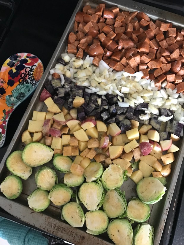 - Baked salmon + asparagus + 1/3 sweet potato. On a baking sheet, I squeeze lemon juice on top of the salmon and rub with dijon mustard, letting it sit for about 30 minutes. Drizzle EVOO over the aspragus and top with a dash of kosher salt + pepper. Pop in the oven at 405 for 13 minutes and voila!
